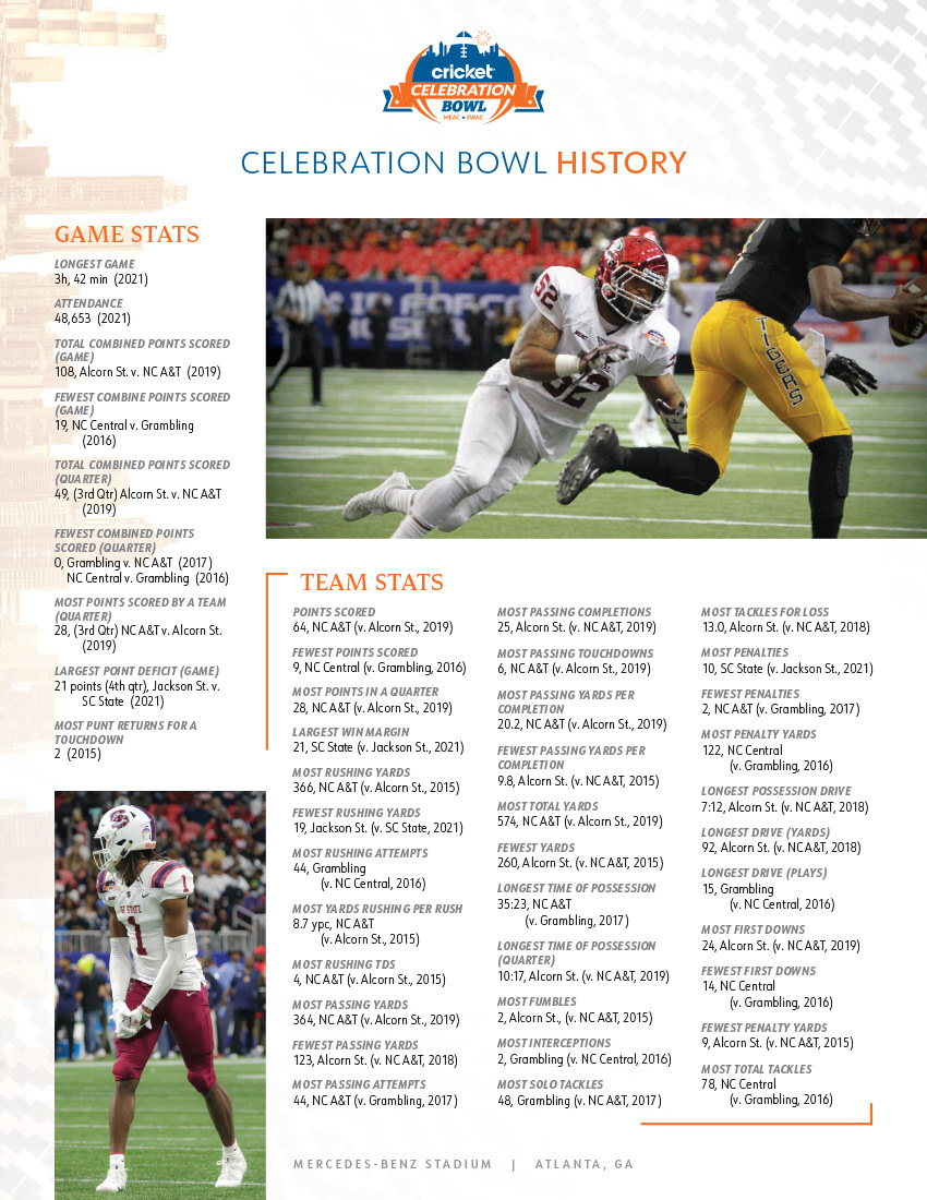 ESPN Events Celebration Bowl 2018 Sales Booklet — this 20-page booklet was designed to present the Celebration Bowl HBCU (Historically Black Colleges and Universities) championship football game to organizations and corporations and to generate excitement and financial support. The client requested a "diamond" theme and supplied the front cover art.